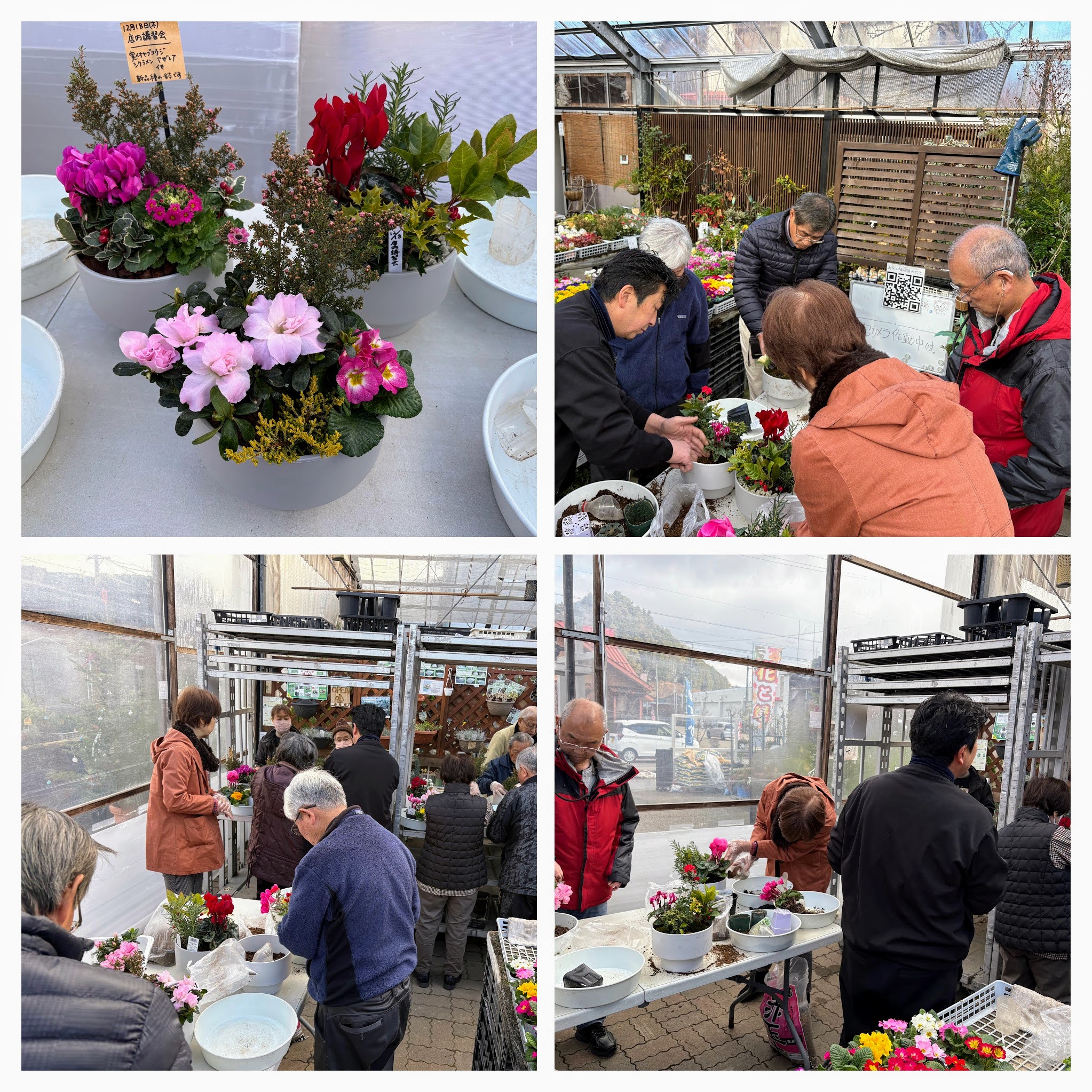 内容は冬の室内向きのお花を使ったお正月風寄せ植え作りにチャレンジしてみましょう